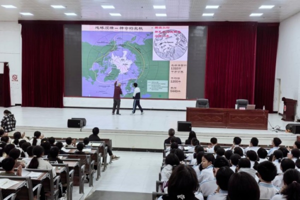活动特邀两位资深专家进行专题科普讲座。现任中国科学院老科协科普讲师团团长的李承森老师,以《走进南北极 探秘冰雪世界的故事》为题,带领同学们进行了一场跨越地球之巅的奇幻旅程。他结合多年极地科考经历,通过大量一手影像资料,生动讲述南北极的地质演变、生态特征,以及全球气候变化对极地环境的影响。从壮丽冰川到极地生物,从极端环境下的生命韧性到我国科考队员的探索精神,李教授的讲解既富知识性,又充满人文温度,引导同学们思考人与自然的关系,树立生态文明理念。现场互动环节气氛活跃,同学们踊跃提问,展现出对极地科学的浓厚兴趣。