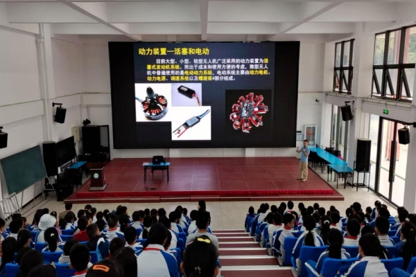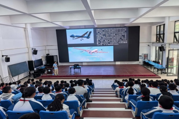 昆明理工大学民航与航空学院杨洋老师则聚焦于前沿科技领域,带来《无人机:从“会飞的玩具”到“空中多面手”》主题讲座。杨老师从同学们熟悉的航拍无人机入手,深入剖析了无人机的飞行原理、核心技术构成及发展历程与多场景应用,通过物流运输、农业植保、气象监测、应急救援、环境监测、影视创作等众多领域的实际案例,生动展现无人机作为“空中多面手”的强大功能与发展前景。讲座过程中,教授带来的无人机实物展示、简易操作体验和同学们互动将现场气氛推向高潮,激发了同学们对工程技术和智能制造的无限向往。