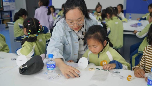 科学探究课上,讲解员生动讲述了日晷的历史故事和工作原理,带领小朋友们认识中国古代的计时方式。大家亲手组装日晷、调整角度,学习使用指北针确定方向,并在阳光下体验日晷计时的方法,在实践操作中真切感受到古人的智慧结晶。